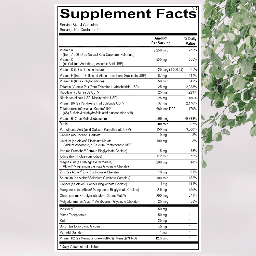 A comprehensive multivitamin that supports metabolism and protects against nutrient depletion for optimal health.