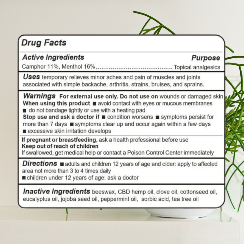 • Made with 16% menthol and 11% camphor