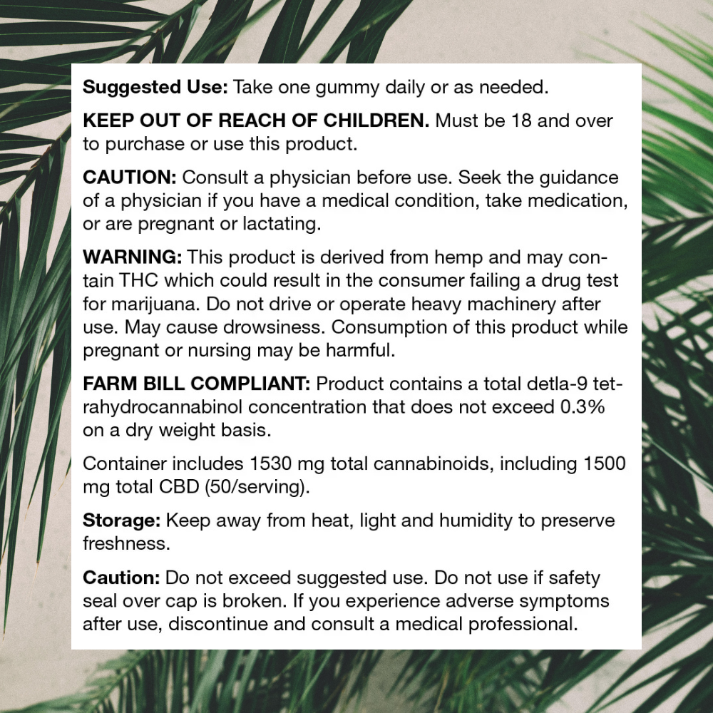 If you’re just starting out on your wellness journey, we advise taking a CBD gummy every morning for 30 days and monitoring how you feel. That’s because CBD can affect everyone differently, and it’s generally suggested to maintain consistent use to allow the compounds to interact with the body.