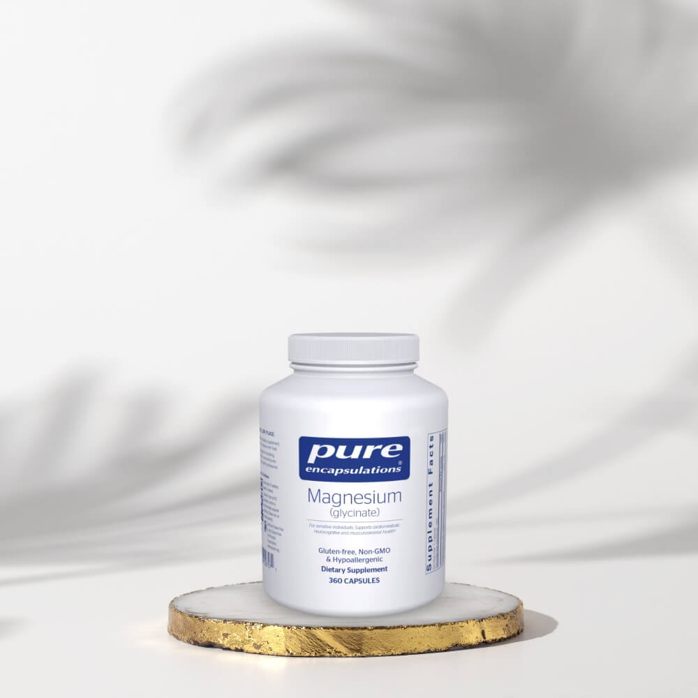 Magnesium (Glycinate) supports a range of physiological functions, including neuromuscular contractions, heart health, and acid-alkaline balance. It plays a key role in energy production and metabolism of carbohydrates, fats, and amino acids. Studies link optimal magnesium intake to improved mood, healthy cardiovascular function, glucose metabolism, and bone density. This gentle form of magnesium is easy on the stomach and less likely to cause loose stools, making it ideal for regular supplementation.