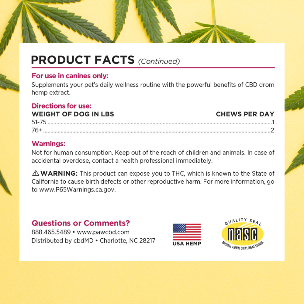 Paw CBD Broad Spectrum CBD Dog Hard Chews Details