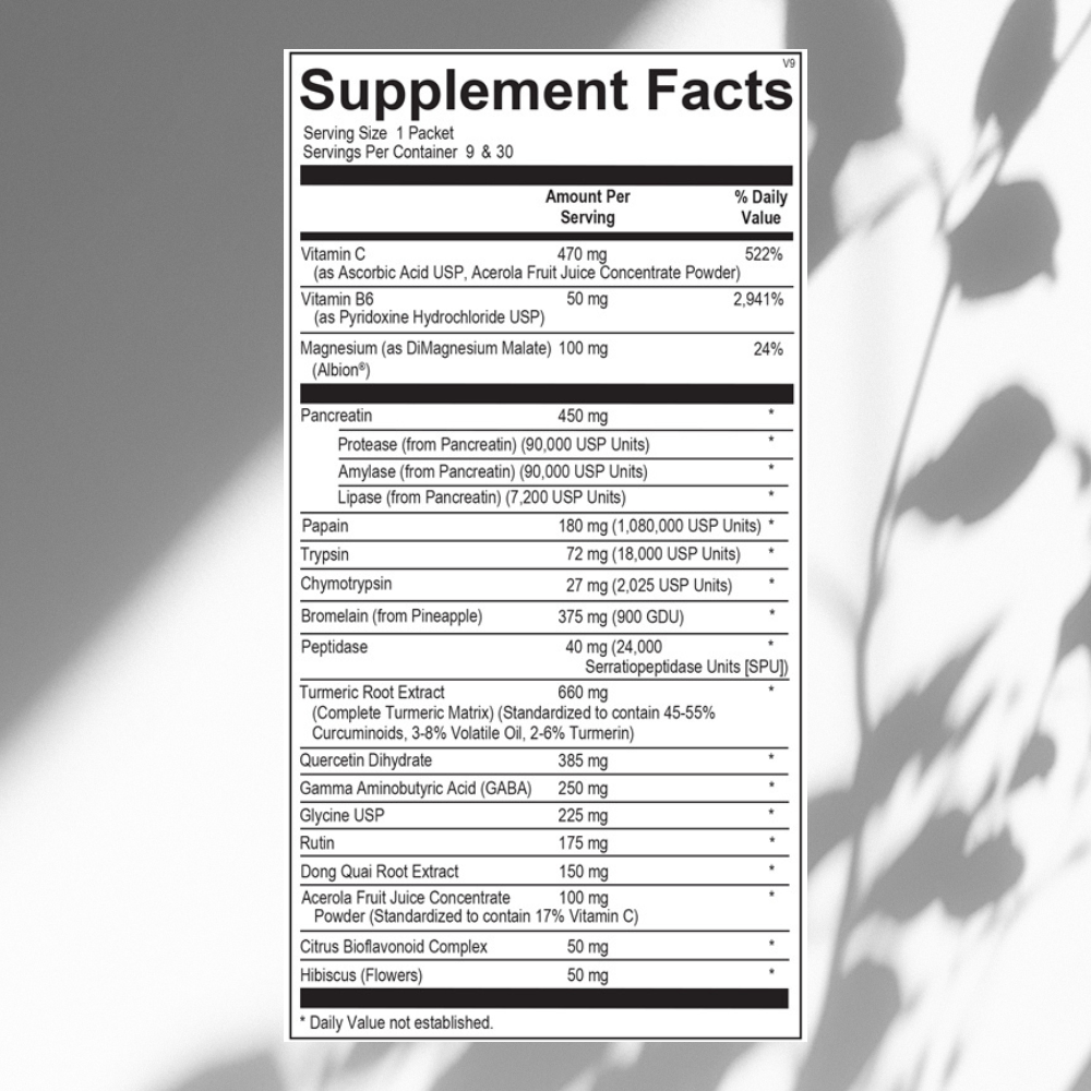 Proteolytic Enzymes (as Vascuzyme): Soft Tissue Support Pack also includes Vascuzyme, which provides the powerful enzymes bromelain, trypsin, amylase, lipase, lysozyme, cellulase, peptidase and alpha chymotrypsin. This combination has been used for many years in Europe as part of a multidimensional approach for tissue repair and recovery.