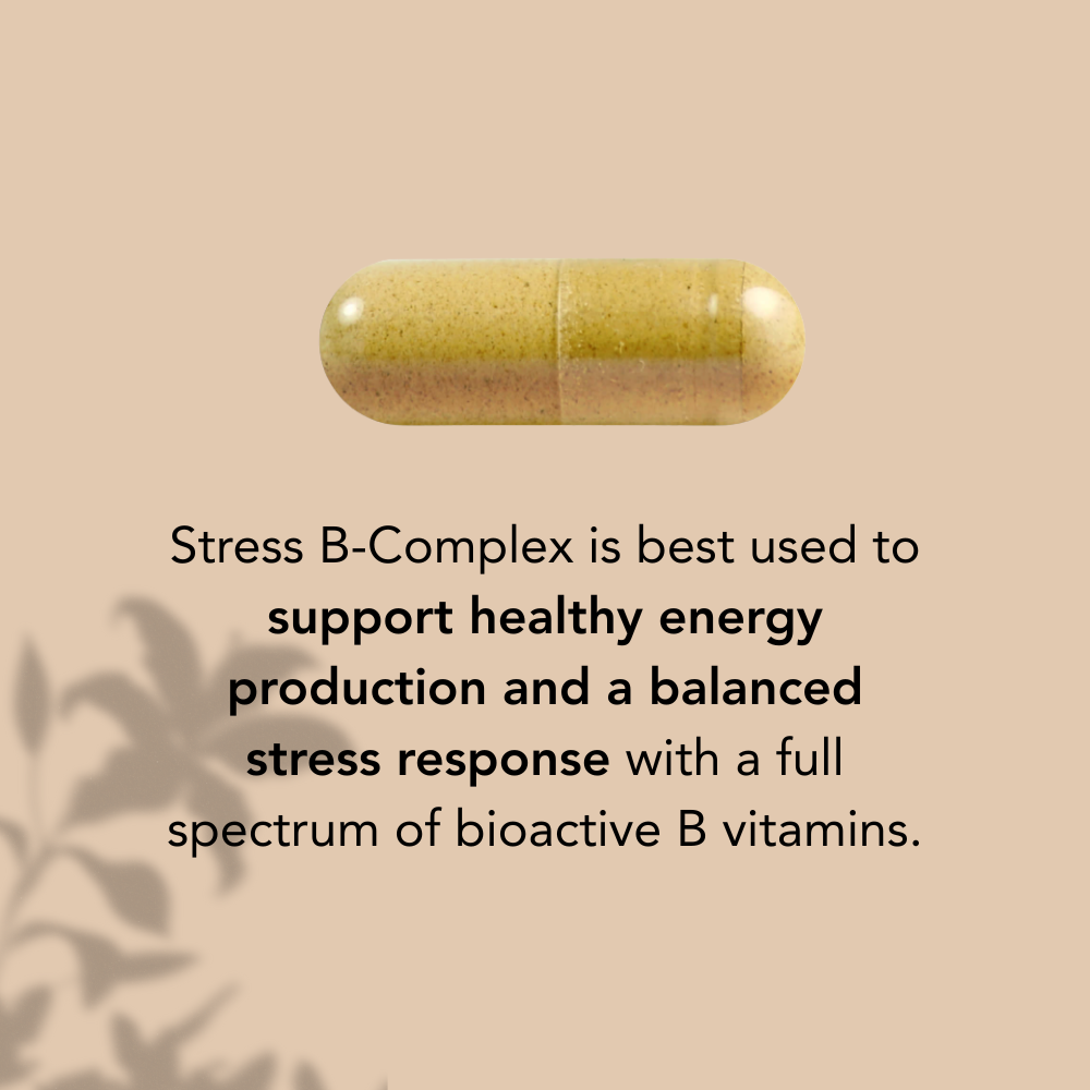 Stress B-Complex provides a balanced blend of essential B vitamins, including extra B5, to support adrenal health, immune function, and energy production. This powerful formula promotes a healthy stress response, balanced mood, and cognitive function while helping reduce fatigue. Featuring B vitamins in their active forms for optimal absorption, Stress B-Complex is perfect for individuals managing a busy, overstressed lifestyle who seek enhanced cellular energy and nervous system support.