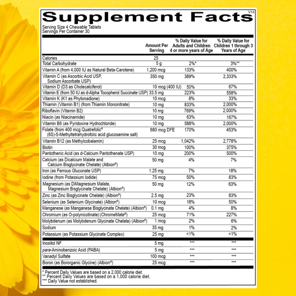 • Comprehensive Multivitamin and Mineral Support